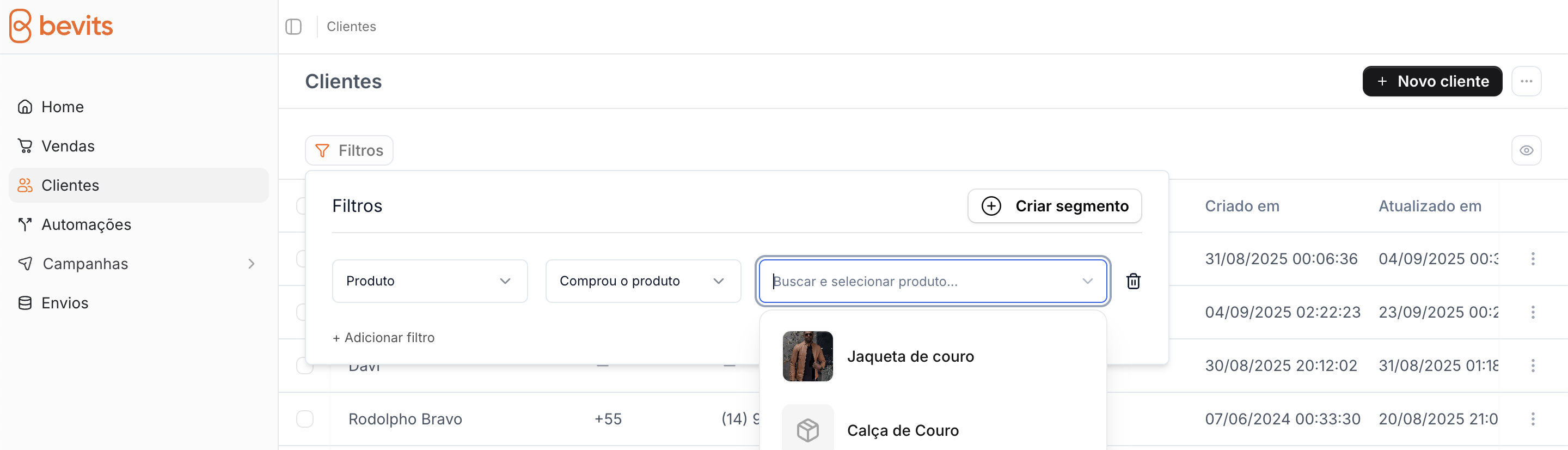 Agora você consegue filtrar seus clientes (e criar segmentos personalizados) com base em produtos e categorias comprados. Isso é útil para criar campanhas mais personalizadas e direcionadas aos seus clientes.