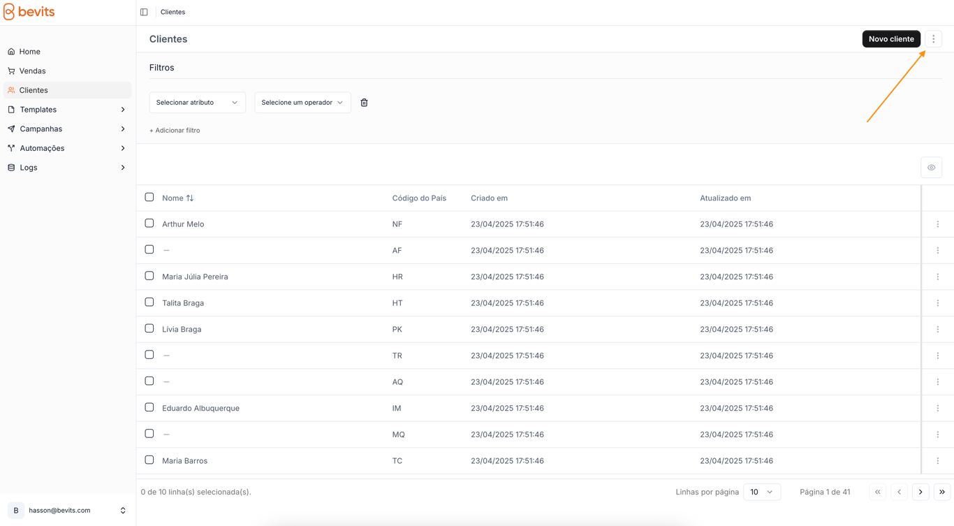 - Localize e clique no ícone de três pontos situado no canto superior direito, adjacente ao botão Novo cliente