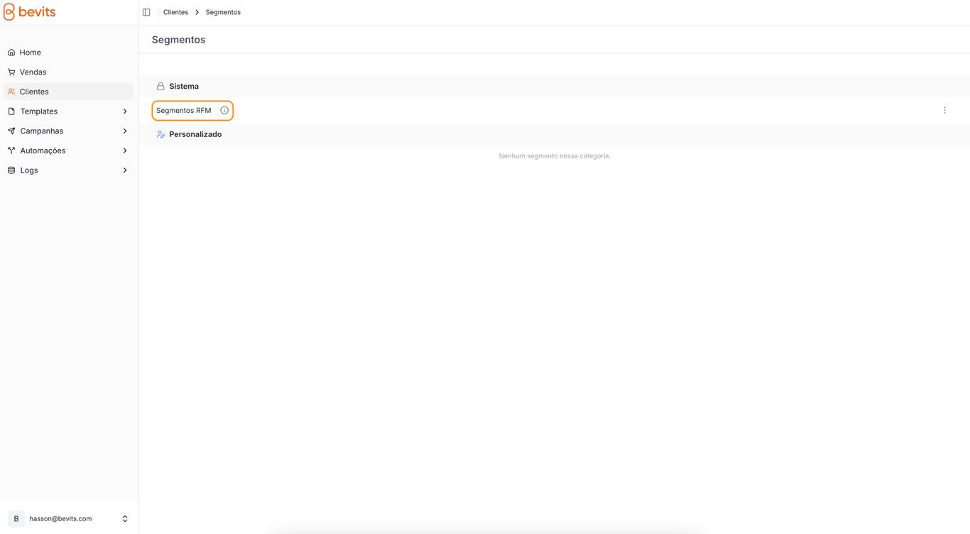 - Na interface de segmentos, selecione Segmentos RFM na categoria Sistema