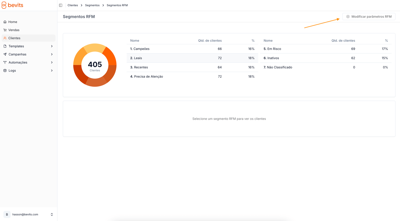 Por padrão, não recomendamos alterar os parâmetros RFM, mas caso seja necessário, siga os passos abaixo e em caso de dúvidas, entre em contato com o suporte.