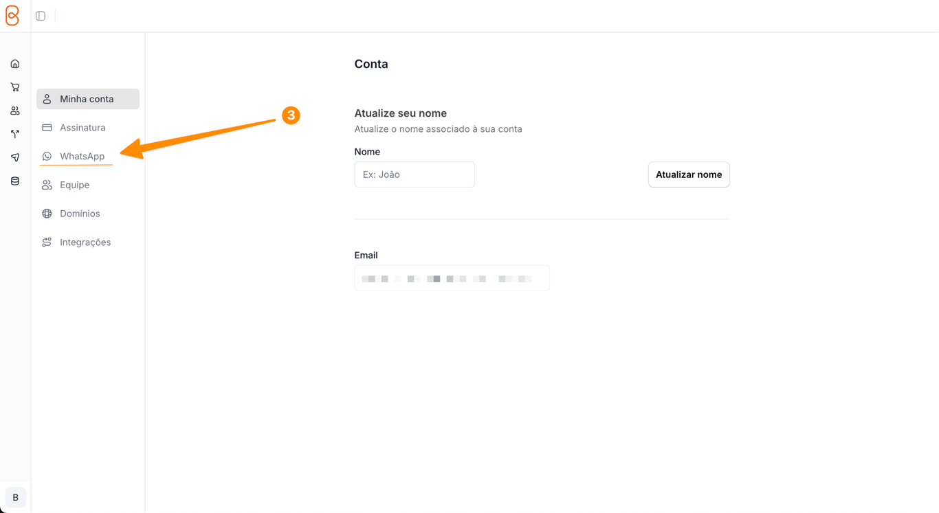 - Clique em WhatsApp