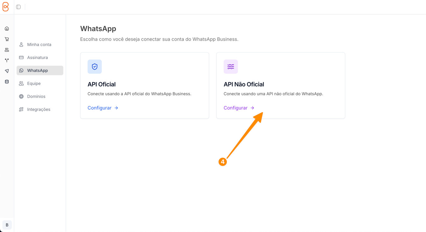 - Após a nova página abrir, clique em Conecte o WhatsApp